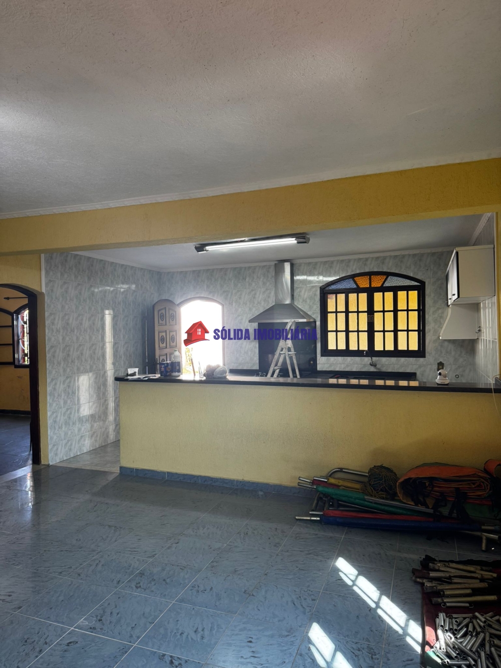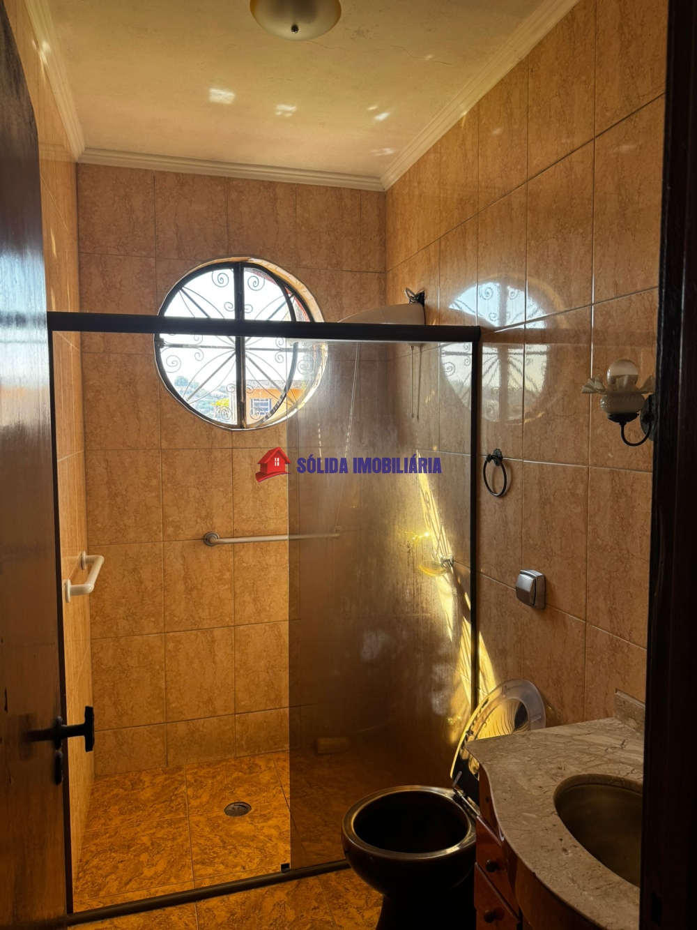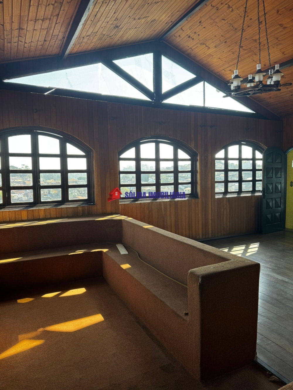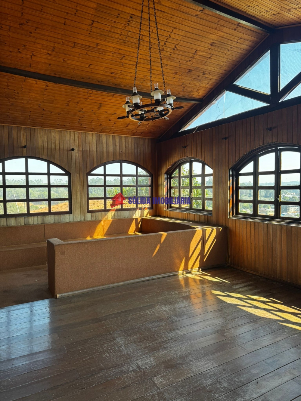 A casa possui 3 quartos, sala de estar, banheiro, sala de TV, sala de jantar com vista maravilhosa do bairro e da cidade na parte superior. Na parte inferior, 2 quartos, um sendo suíte, despensa, cozinha com copa. Garagem coberta com espaço para 5 carros. Terreno amplo com jardim.