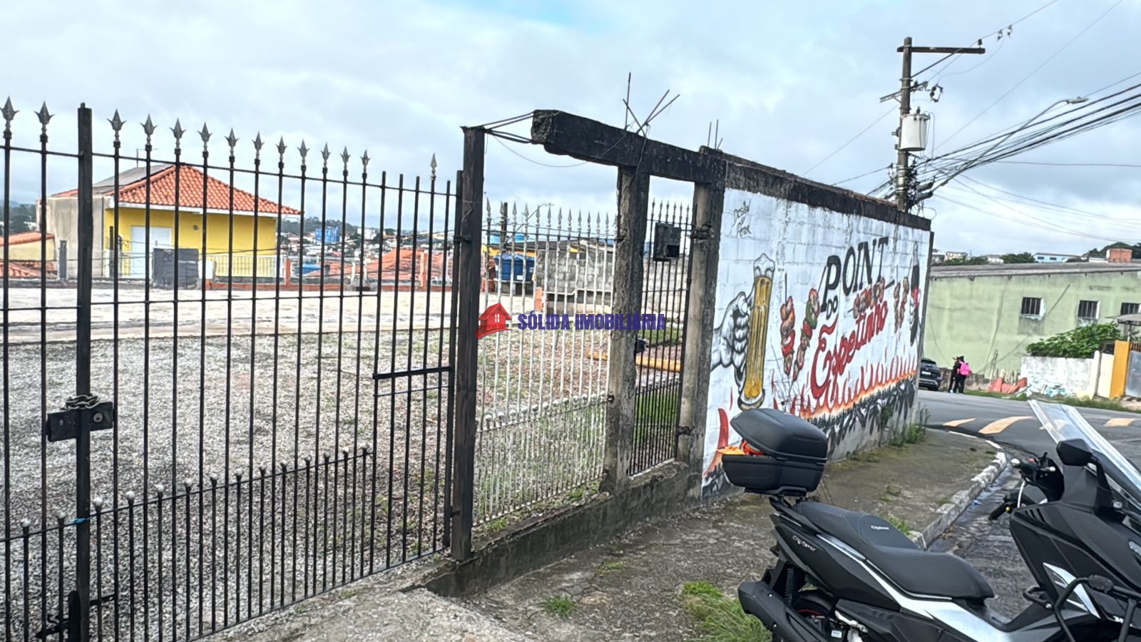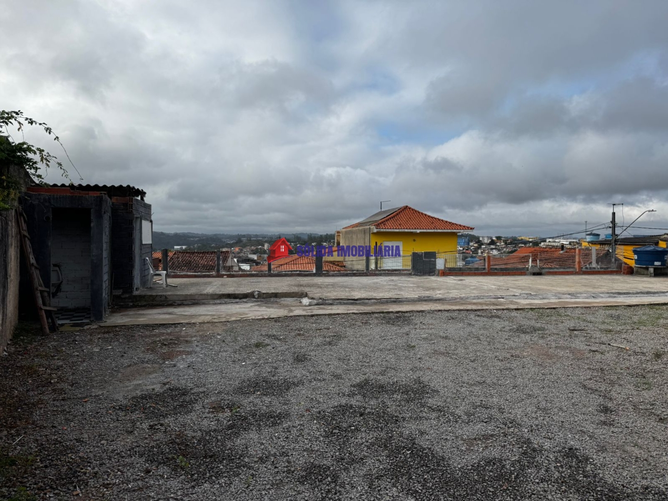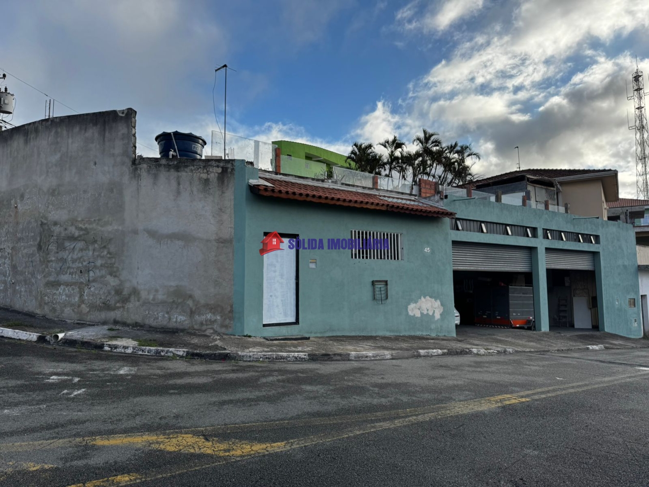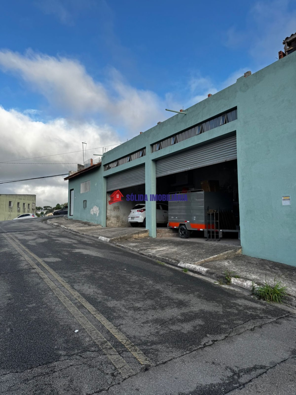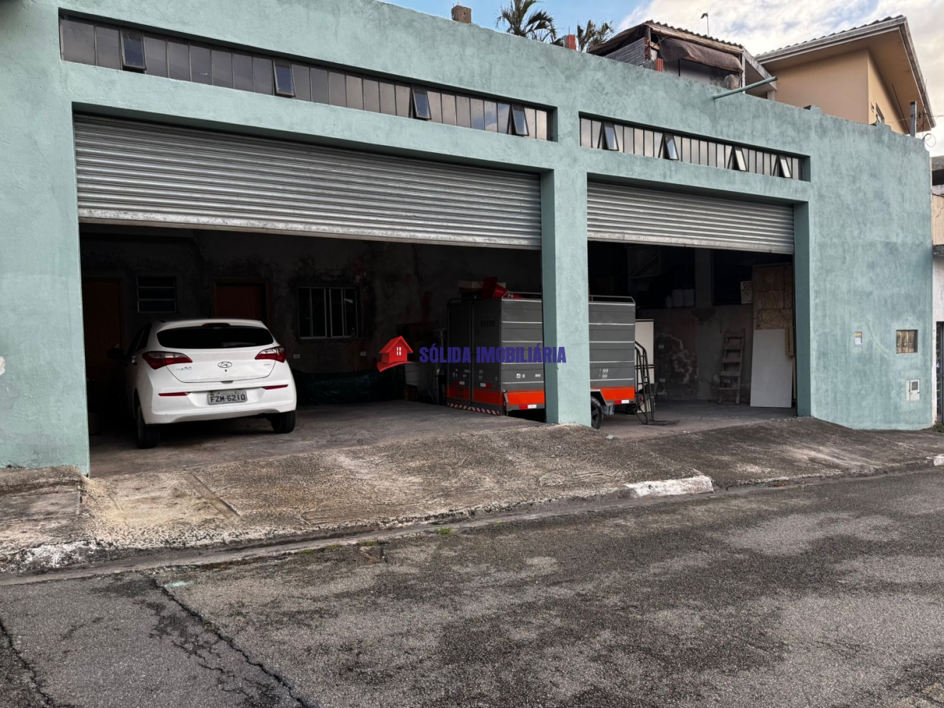 Prédio já possui dois galpões com pé direito de 5 metros, escritório e banheiro, mais uma casa pequena (ambos já alugados e dando lucro). O alicerce já feito para suportar construção de mais andares.